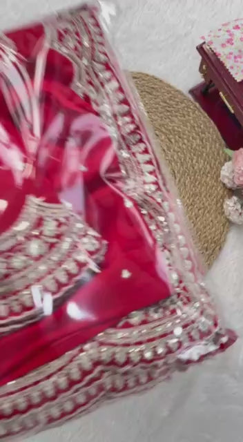 Make a bold and graceful statement with this Ruby Red Designer Saree, crafted in rich Vichitra Silk and adorned with elegant sequin and thread embroidery. The luxurious fabric paired with intricate detailing gives this saree a regal charm, making it ideal for weddings, festive celebrations, and special occasions.