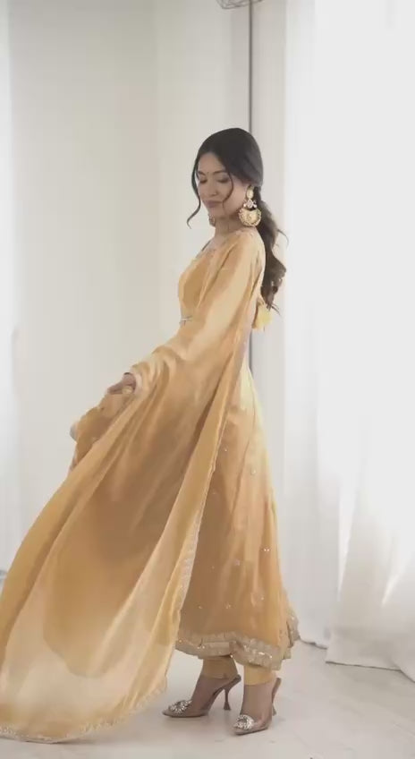 Elevate your festive and occasion wear with this beautifully crafted Anarkali set, designed for grace and comfort.