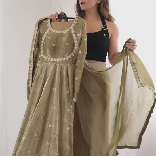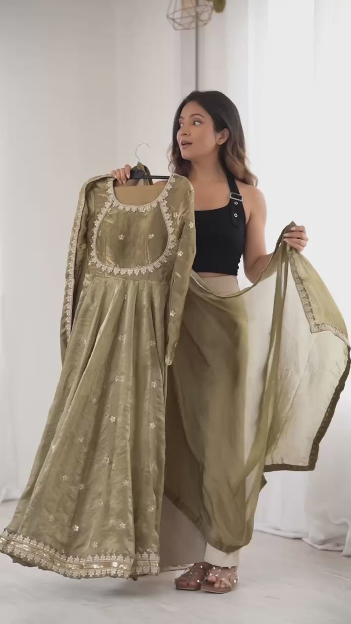 ๐ฟ Elegant Fandy Silk Anarkali Set ๐ฟ