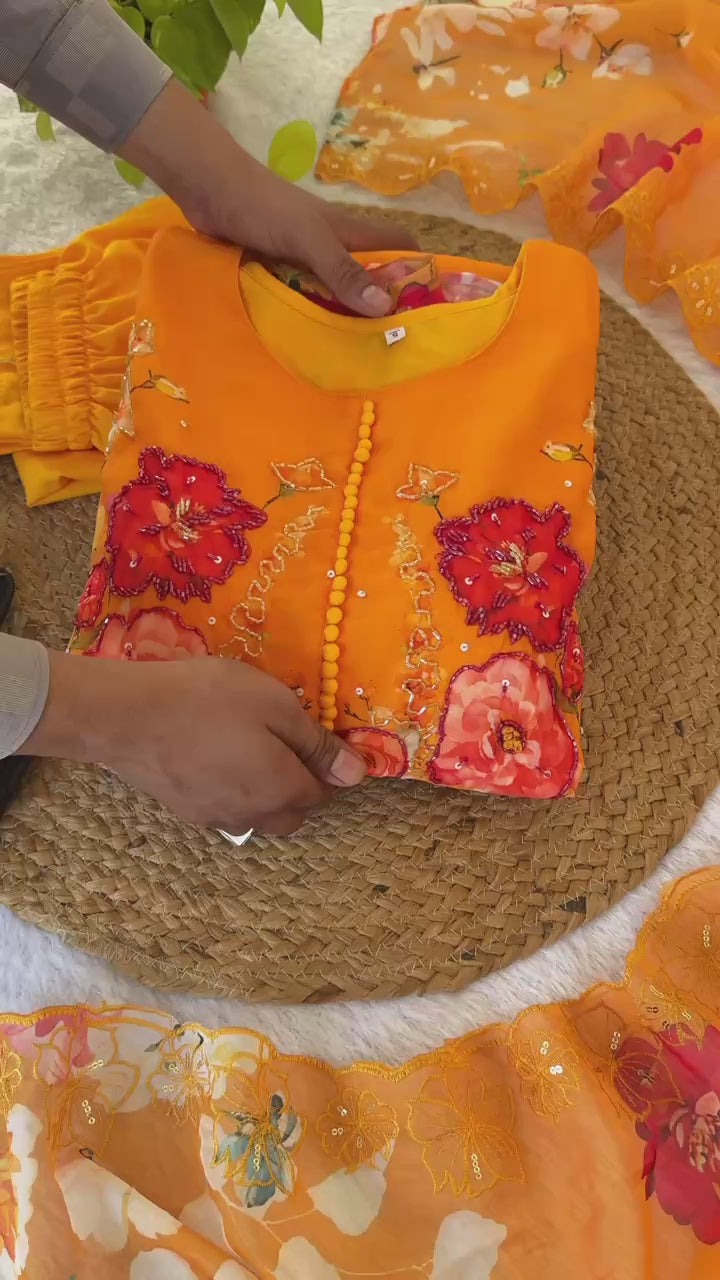 👗Gown Fabrics Fox Georgette Heavy Quality Fabric With Handwork Neck And Sleeve ,Full Long With Creap Pant , Taby Silk Digital print Dupatta With Embroidery Sequence Work Broder
