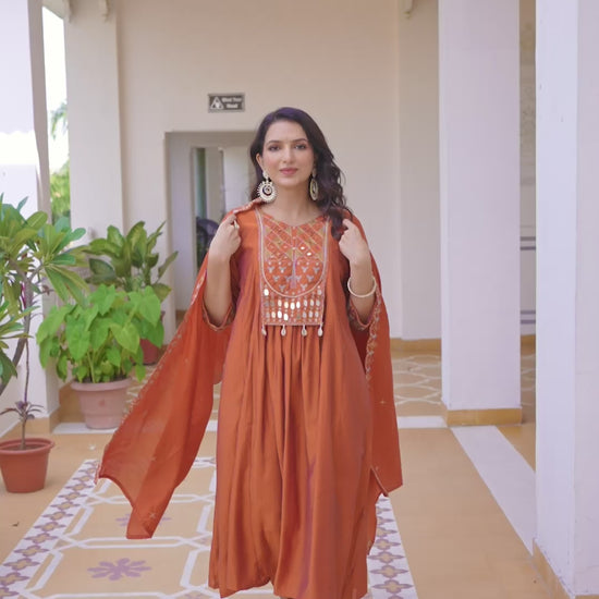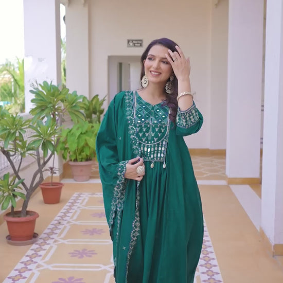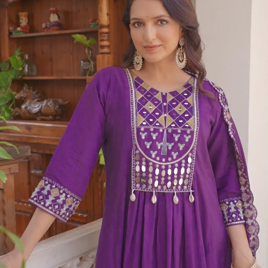 Work :- Multi Embroidery Thread With Real Mirror Hand Work