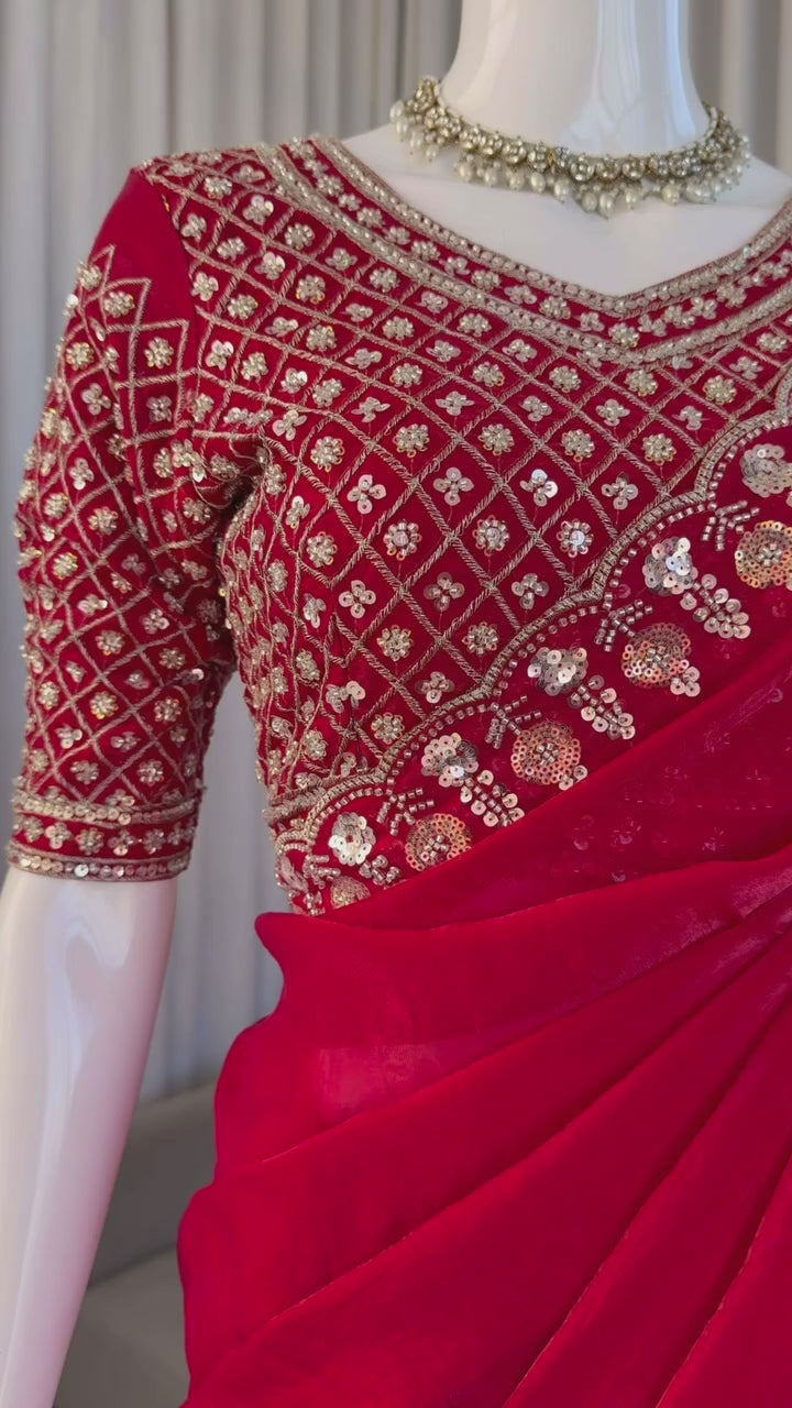 This saree is a perfect choice for women who love luxury ethnic fashion with detailed handwork. Pair it with statement jewelry to create a breathtaking traditional look.