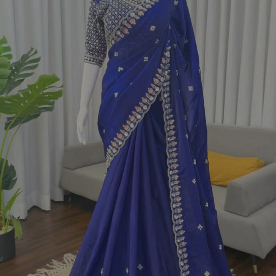 Royal Blue Designer Saree with Heavy Beads & Embroidery Work